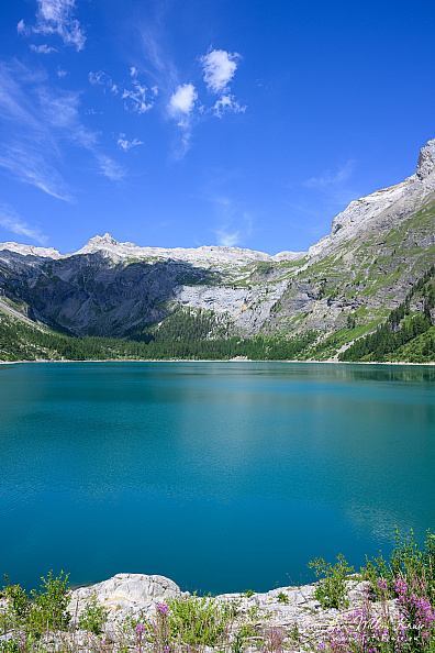 The reservoir has a volume of 51 mio m³ and a surface area of 0.85 km2 (0.33 sq mi). It was formed by the dams of Zeuzier (156 m) and Proz-Riond (20 m) built in 1957.