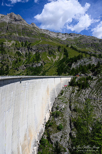 The reservoir has a volume of 51 mio m³ and a surface area of 0.85 km2 (0.33 sq mi). It was formed by the dams of Zeuzier (156 m) and Proz-Riond (20 m) built in 1957.