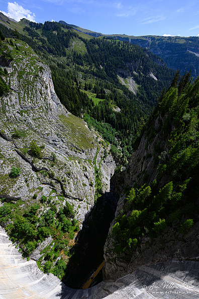 The reservoir has a volume of 51 mio m³ and a surface area of 0.85 km2 (0.33 sq mi). It was formed by the dams of Zeuzier (156 m) and Proz-Riond (20 m) built in 1957.