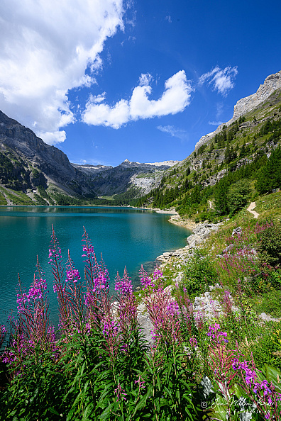 The reservoir has a volume of 51 mio m³ and a surface area of 0.85 km2 (0.33 sq mi). It was formed by the dams of Zeuzier (156 m) and Proz-Riond (20 m) built in 1957.