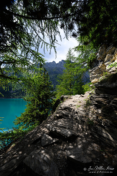 The reservoir has a volume of 51 mio m³ and a surface area of 0.85 km2 (0.33 sq mi). It was formed by the dams of Zeuzier (156 m) and Proz-Riond (20 m) built in 1957.
