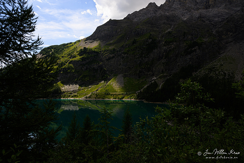 The reservoir has a volume of 51 mio m³ and a surface area of 0.85 km2 (0.33 sq mi). It was formed by the dams of Zeuzier (156 m) and Proz-Riond (20 m) built in 1957.